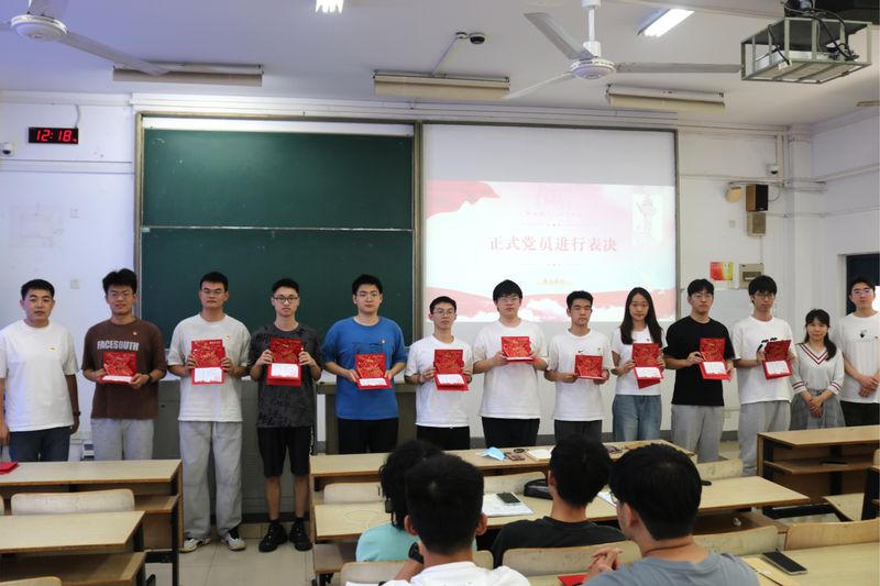 近日,新葡的京集团8814本科生第二党支部召开预备党员转正大会。大会由党支部书记强增寿主持。会议在庄严的国歌声中拉开帷幕。申请转正的预备党员依次汇报预备期内思想、学习、工作等方面表现,全面总结成绩与不足。入党介绍人对预备党员们的表现给予客观公正的评价,认为他们在预备期内能够自觉加强政治理论学习,工作上勤奋务实、勇于担当,生活中严于律己,能够做到以党员的标准严格要求自己,考察期间表现优秀。其他正式党员一一发表意见,对20位预备党员进行评价。经无记名投票表决,决定20位预备党员按期转正。