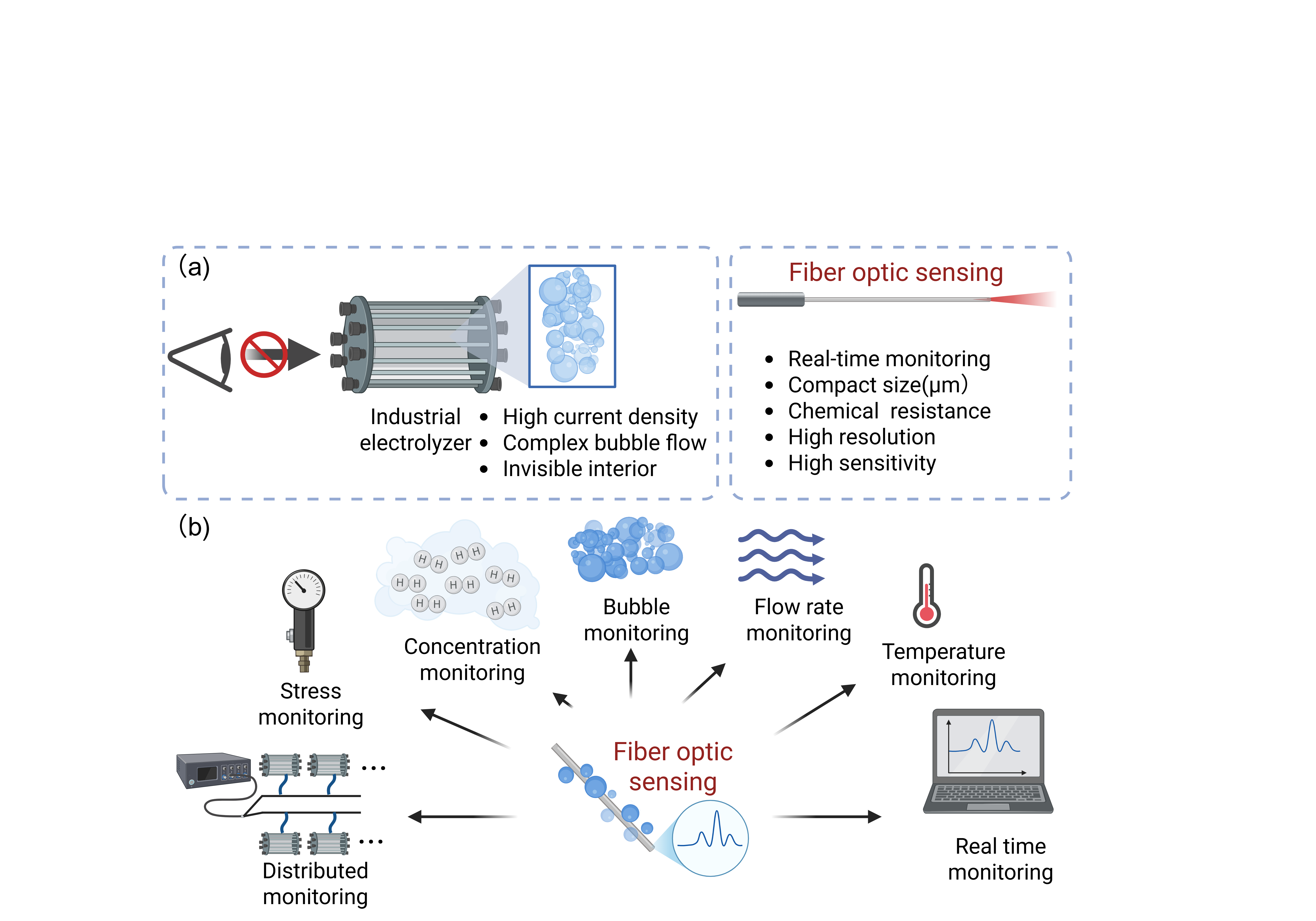 图1电解槽气泡监测的困境和光纤传感的应用潜力