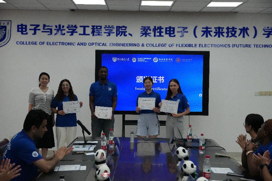 8月31日,2025年“锦绣江苏”国际暑期学校项目——“波连万物,芯动未来—智能电子技术前沿”圆满闭幕。电光学院副院长刘蕾蕾、海外教育学院副院长汤美玲及相关教师出席结业典礼。刘蕾蕾副院长在总结中表示:“在过去的十四天中,我们共同探索了柔性电子、信息科技等前沿领域,从学术讲座到科学实践,从文化体验至企业参访,留下了诸多难忘瞬间。此次活动不仅拓展了大家的学术视野,激发了科研热情,也让大家体验到从理论到实践的成就感,并深刻感受到中华传统文化的博大精深。”她鼓励学员继续保持对知识的热爱与探索的精神,将所学所感带回各地。