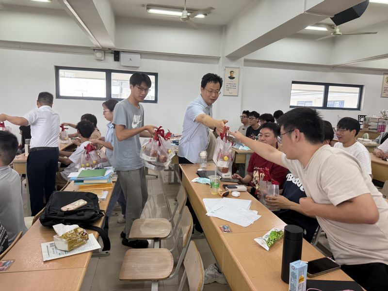 随后,辅导员们介绍了考研礼包中各物品的寓意,并送上暖心祝福。学院领导、老师与学生党员一同为同学们发放了加油礼包和消暑冰淇淋。每一份慰问品都承载着学院的深切关怀与殷切期望。